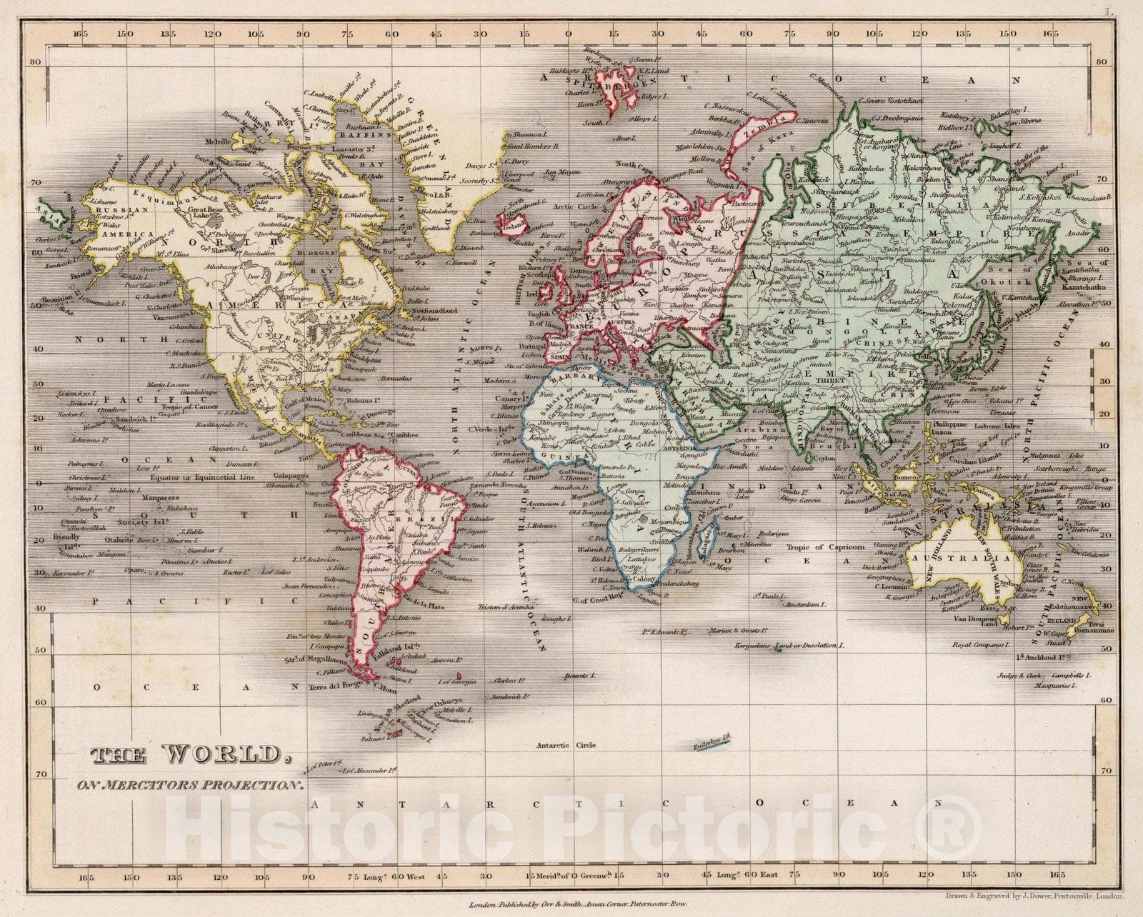 Historic Map : World Atlas Map, The World, on Mercator Projection